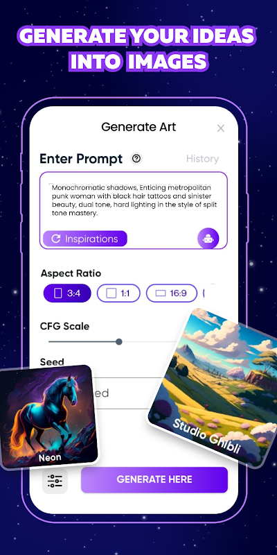 Genera immagini straordinarie con l'intelligenza artificiale utilizzando istruzioni personalizzate e predefinite.