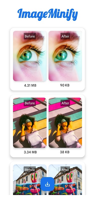 Con ImageMinify, ottieni una soluzione perfetta per la gestione e la compressione delle tue immagini. Che tu abbia bisogno di risparmiare spazio di archiviazione, velocizzare i caricamenti o ottimizzare le prestazioni delle immagini, questa app fornisce potenti strumenti su misura per le tue esigenze.