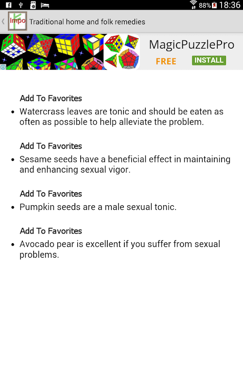 With this app, we have compiled ancient remedies for erectile dysfunction. We give you only the successful ones for male impotence Here is the table of contents: