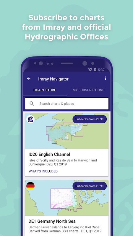 - Carte raster nautiche pluripremiate di Imray e altri uffici idrografici.