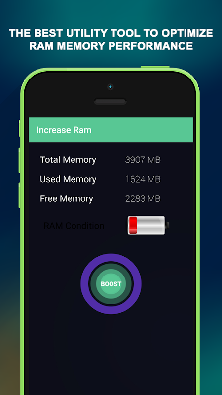 Increase Ram application is the best utility tool to optimize RAM memory performance and making your phone or tablet faster. Very easy to use and simply Boost RAM by single tap Boost. Many android devices bundle with limited amount of RAM memory and battery life make some space in your phone.