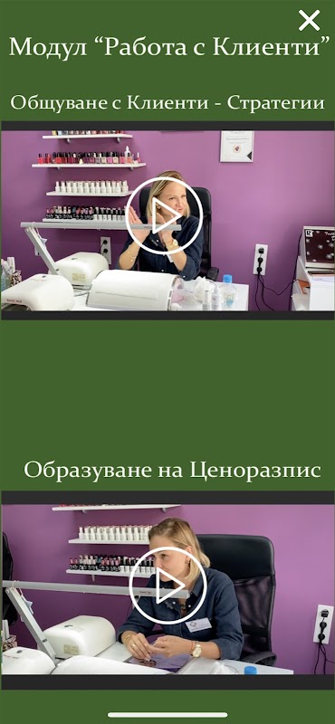 In questa applicazione troverai informazioni utili sulla professione di manicure-pedicurista. Unico nel suo genere! Questo è il futuro e lo costruiremo insieme! I corsi faccia a faccia sono ancora rilevanti, ma nel tempo tutto in questa professione può essere appreso interamente ONLINE. Lo diciamo perché abbiamo già laureati in corsi completamente online che non sono mai venuti da noi, ma i loro risultati sono impressionanti in base a ciò che abbiamo mostrato loro come metodo di lavoro, possibili errori e quando si lavora con gli studenti. Abbiamo creato un sistema di lavoro per apprendere la professione da remoto, senza frequentare corsi in presenza e senza rispettare un programma. Pertanto, abbiamo creato questo portale per aiutare quante più persone possibili che vogliono farlo, ma non hanno la possibilità di frequentare corsi in presenza, o non hanno tempo per farlo a causa di altri impegni.