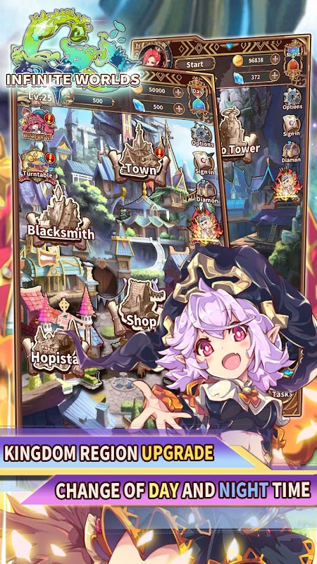 Gioco di ruolo a turni inattivo. Inizia un'avventura in mondi diversi e salvali!