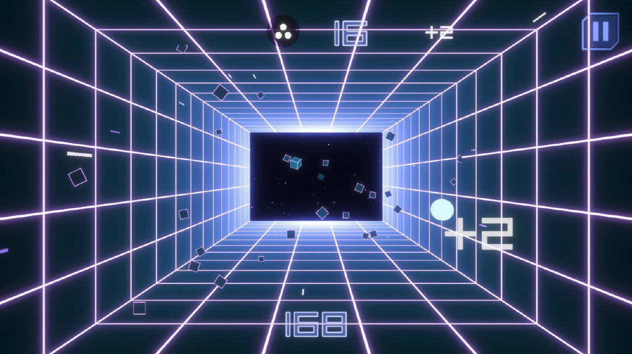 Viaggio infinito! Colpisci cubi a ritmo di retrowave senza errori.