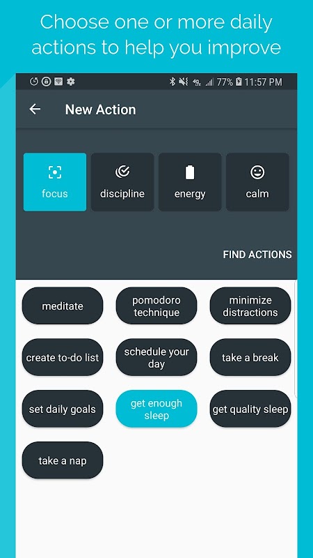 Infix is an app that helps you to develop habits based on the area of your life that you want to improve. Currently, the app supports 4 areas: focus, discipline, energy, and calm (stress management).