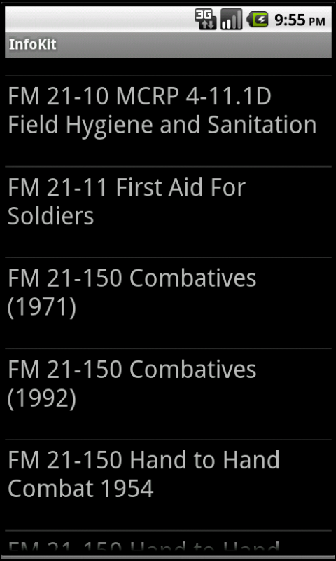 InfoKit is an offline information browser and data distribution which includes a variety of information including classic fiction, non-fiction, military manuals and other media. Access first aid, tactical manuals, reference books and classic fiction without internet access!