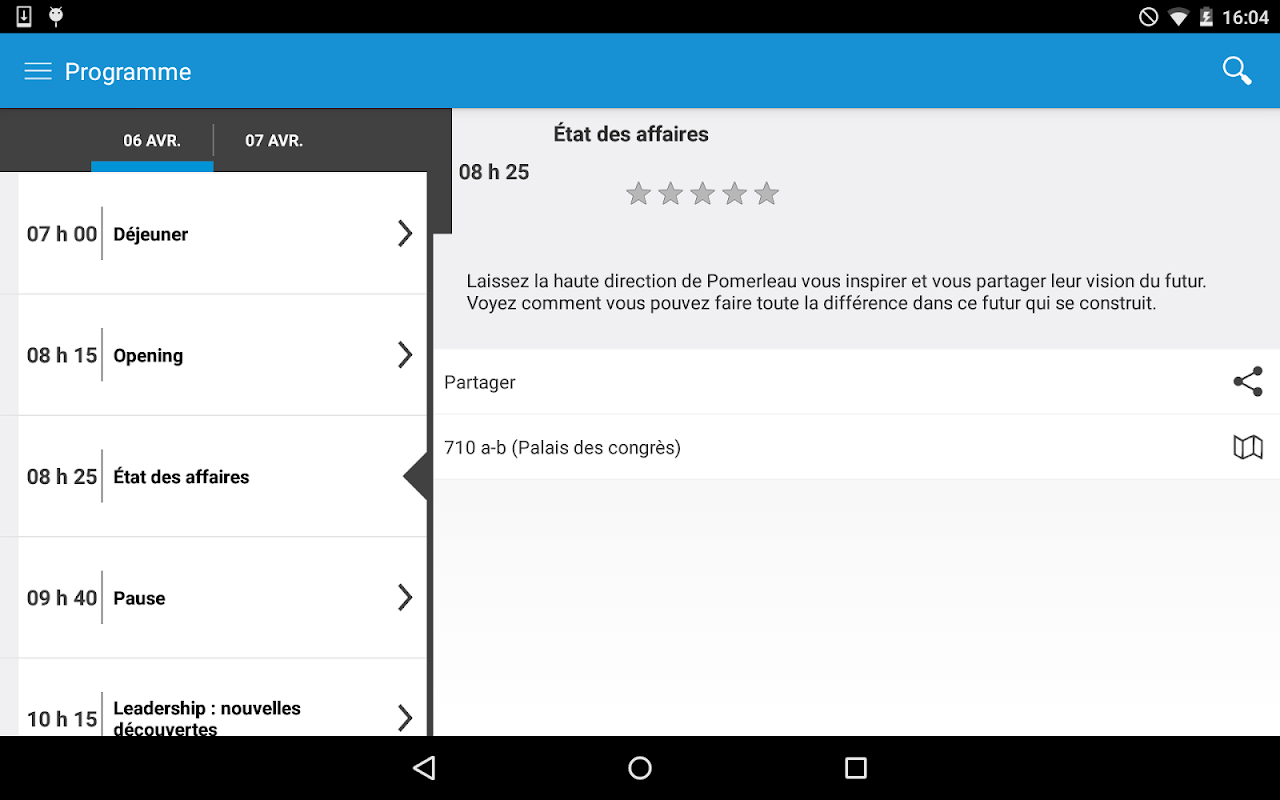 A must-have tool for all Pomerleau LAB participants. In addition to the detailed event schedule, biographies of the speakers, site map and access to important documents, you will be informed of any last-minute changes thanks to the notifications sent to your smartphone. Enhance your experience by downloading this application.