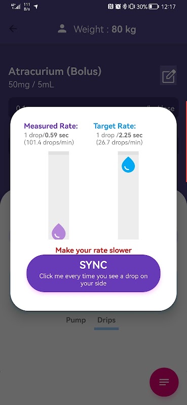 ✔ Calcola la dose in base alla velocità di infusione.