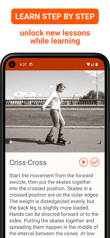 L'app Rollerschool è stata sviluppata da istruttori di pattinaggio a rotelle. Abbiamo deciso di raccogliere l'esperienza di apprendimento accumulata e adattarla all'applicazione.