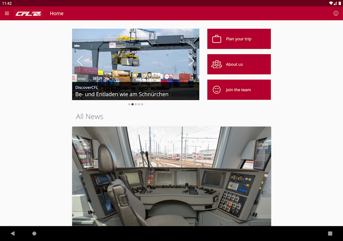 Grazie a insideCFL avrai sempre le ultime informazioni CFL ovunque tu sia. Vuoi restare aggiornato sulle novità della nostra azienda? Se è così, resta solo un clic/download da fare! Oltre alle informazioni attuali sulle nostre diverse attività, sia nel campo dei trasporti pubblici che del trasporto merci e della logistica, insideCFL vi fornisce informazioni sui diversi servizi della nostra azienda, ad esempio l'offerta di carsharing della nostra affiliata CFL Mobility o i viaggi da sogno offerto da CFL évasion. Per coloro che desiderano unirsi al nostro gruppo come futuro dipendente in uno dei nostri ambienti di lavoro stimolanti, l'app fornisce una panoramica di tutte le attuali opportunità di lavoro da cogliere. I nostri colleghi CFL approfittano di ulteriori funzionalità esclusive nella parte staff dell'app.