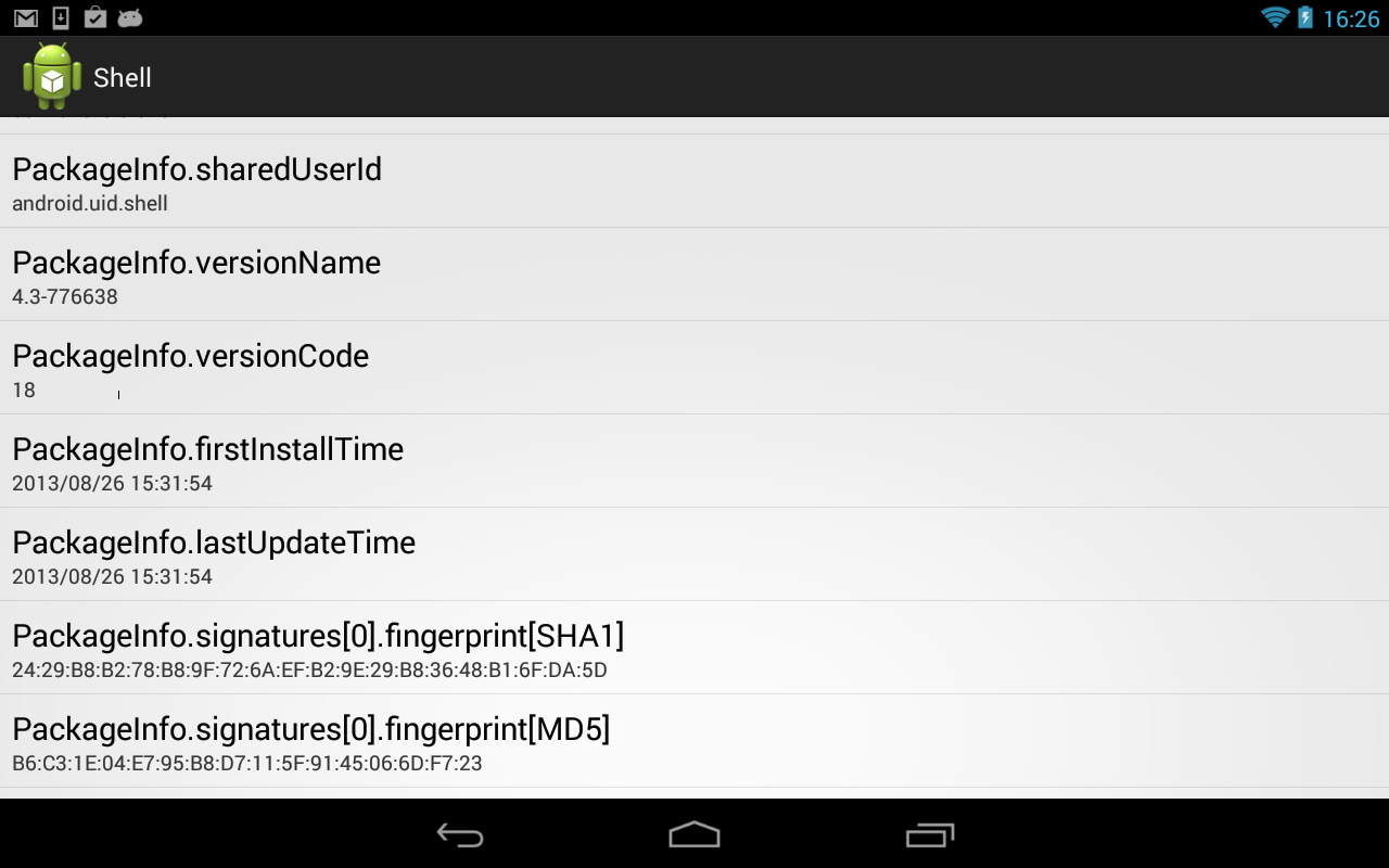 Test application to show all installed APKs and its PackageInfo, ApplicationInfo.