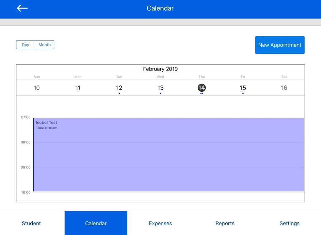 Questo è dove si trova il tuo diario. È possibile selezionare Vista giorno o mese, prenotare un nuovo appuntamento e passare a una prenotazione, in cui è possibile modificare o visualizzare una prenotazione, e inviare le modifiche.