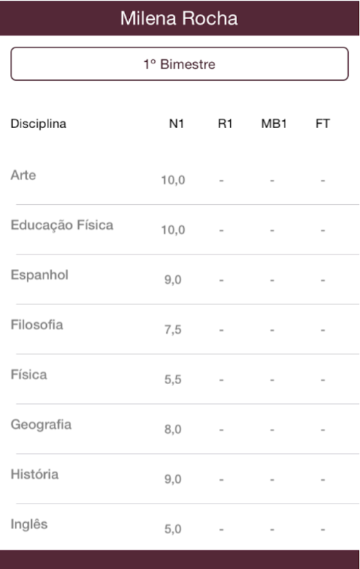 · Visualização de boletim;