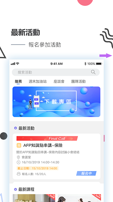 此App旨在提供團隊活動以及內部培訓的資訊。團隊成員可以通過App進行活動的報名。 提高整個團隊的活躍度和透明度。