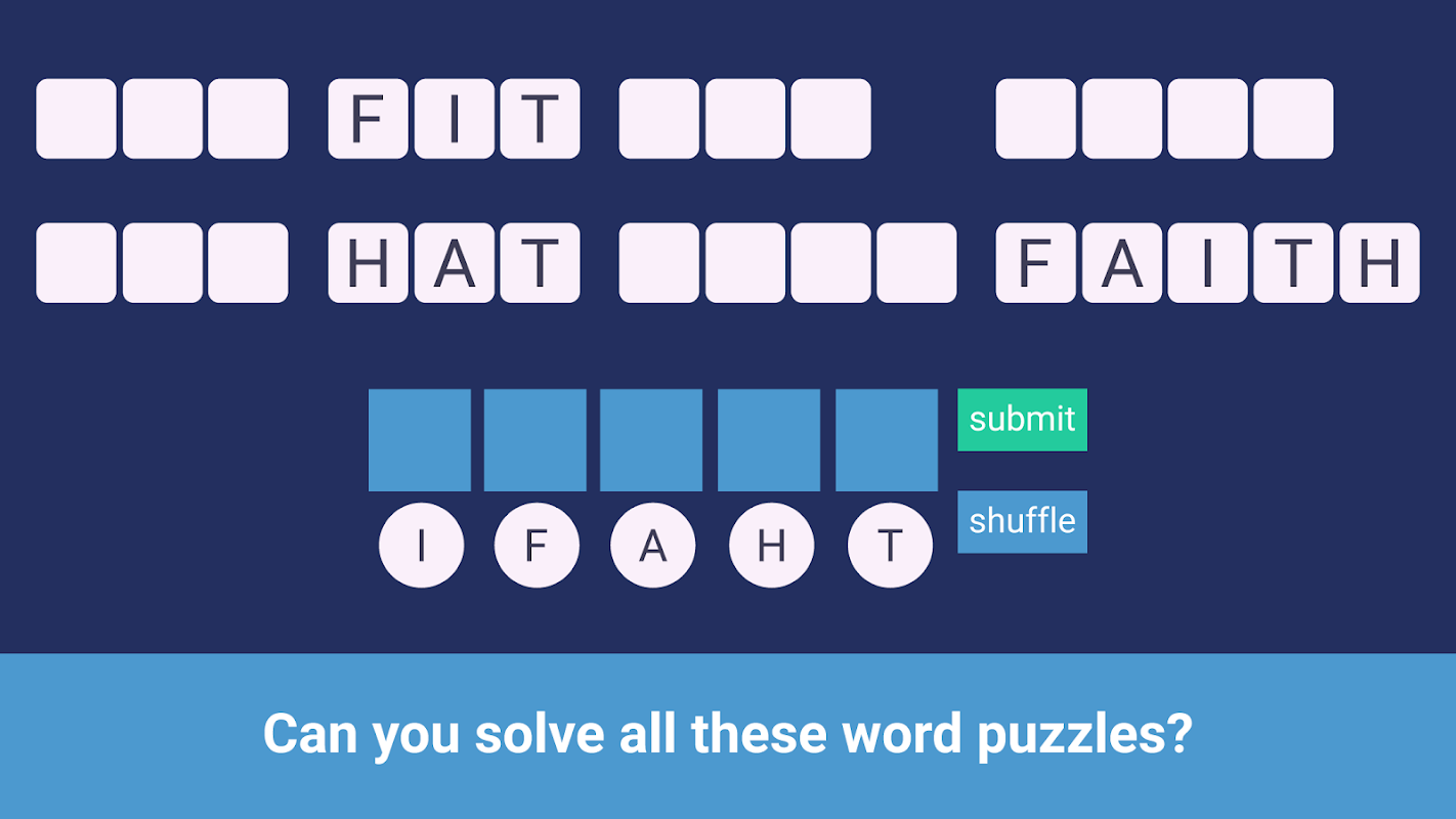 Build myterious words from all available letters! Countless word puzzles from easy to tricky are waiting for you! New puzzles are added continuously for endless word fun!