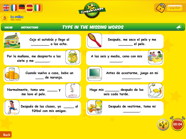 Porta le tue abilità linguistiche al livello successivo con la nostra app Intermedia! Puoi utilizzare il tuo login Linguascope se sei uno studente di una scuola in abbonamento o selezionare una delle singole opzioni di abbonamento nell'app.
