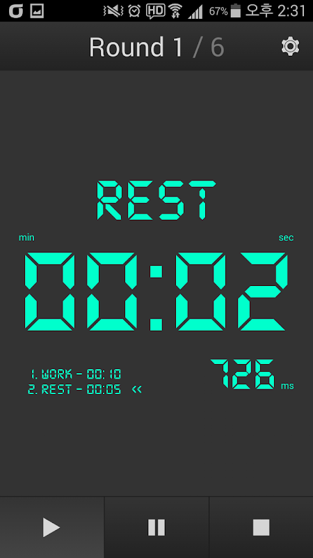 Works for tabata, jump rope and any kind of interval training(HIIT). The regular interval is 3 minutes of workout with 1 minute of rest. However, you can set and regulate your own time interval by the setting!