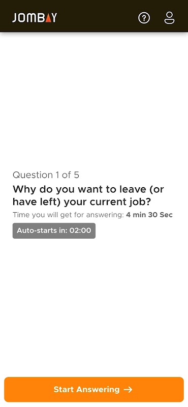 L'intervista di Jombay facilita la registrazione delle risposte video per le domande dell'intervista.
