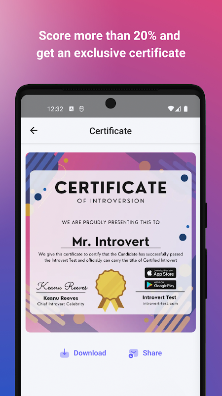 Take our extensive test having more than 50 questions by downloading Introvert Test now! Discover if you're an introvert, extrovert or fall somewhere in the middle on the introvert-extrovert spectrum quiz.
