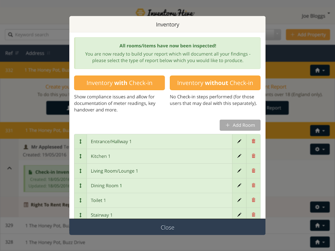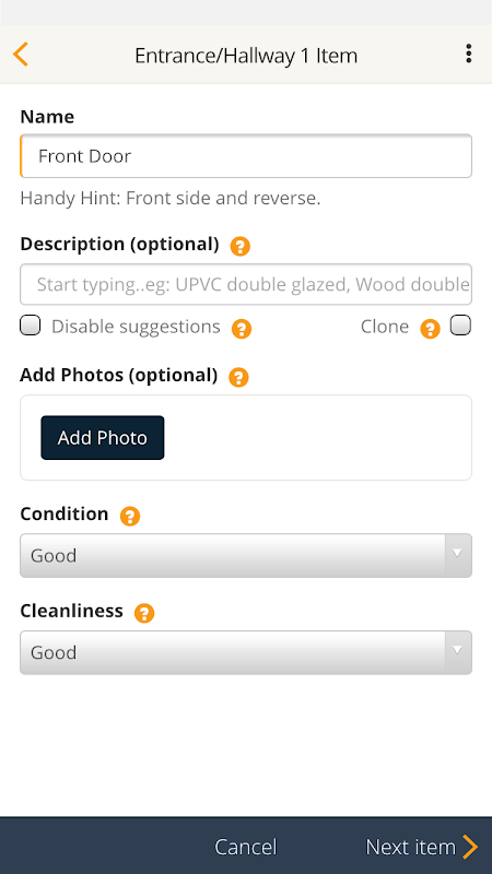• Camere e oggetti solo bisogno di essere descritto una volta ... l'alveare si ricorderà le descrizioni quando gli inquilini vanno e vengono. Basta sostituire le foto e cambiare la condizione e la pulizia - un enorme risparmio di tempo.