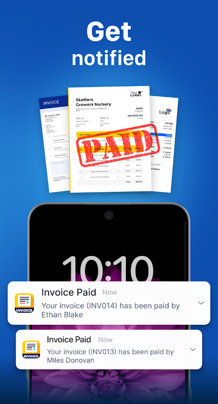 Generatore di fatture: Genera fatture è l'app definitiva per Android per la creazione di fatture, pensata per liberi professionisti, appaltatori e piccole imprese che desiderano creare fatture e preventivi in mobilità. Con potenti strumenti per la fatturazione, questa semplice app per fatture ti aiuta a rimanere organizzato, a dare un aspetto professionale e a ricevere pagamenti più velocemente.