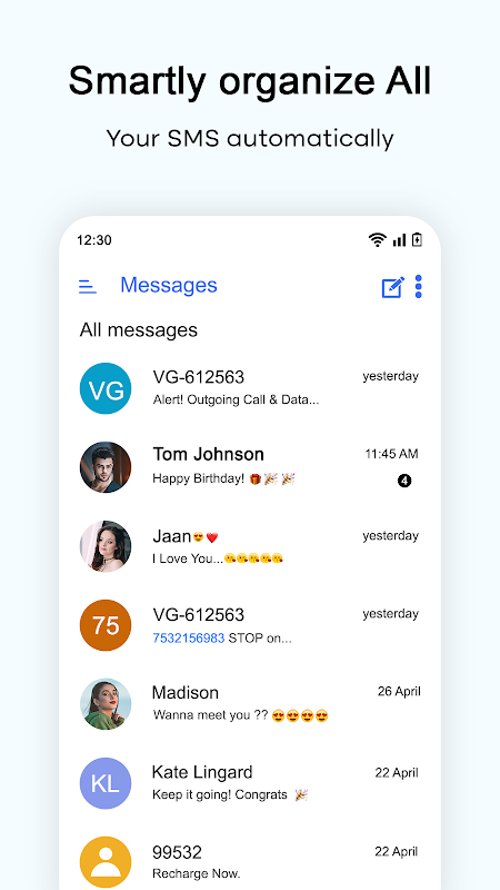 Usa i messaggi Samsung, le chat dal vivo per avere scorciatoie di diverse app di messaggistica per iPhone. Con HTC Messaggi, uno dei migliori Messenger. L'app Messenger Pro ti aiuterà ad aprire Messenger Go per Social Media, Messaggi, Feed. Smart Messages è la migliore app di messaggistica sostitutiva di SMS, MMS e RCS (Chat) con l'app SMS predefinita. Verizon Messaggi semplice app di messaggistica con Textra SMS. App di testo segreto, invia e ricevi messaggi di testo SMS e MMS all'istante!
