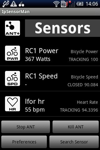 IpSensorMan dovrebbe riconoscere altri tipi di sensori ANT + sebbene il supporto completo della decodifica non sia attualmente implementato.