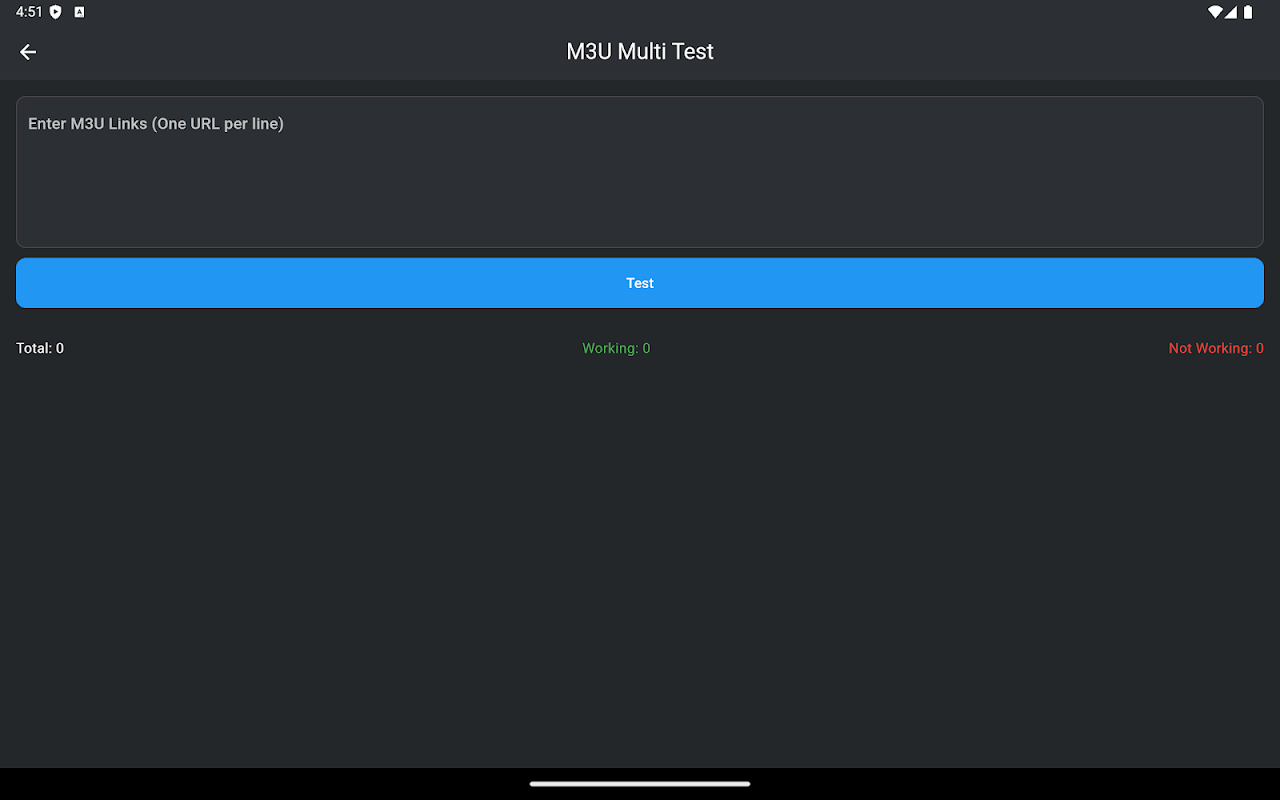 Scopri lo strumento definitivo per gestire e testare le tue playlist IPTV! Con IPTV TOOL e M3U TEST, puoi caricare facilmente file M3U, analizzare canali e classificare le tue playlist. Assicurati che i tuoi collegamenti siano attivi con il nostro tester di connessione veloce e affidabile. Perfetta per gli appassionati di IPTV, questa app supporta funzionalità avanzate per l'organizzazione delle playlist e un'esperienza di streaming senza interruzioni.