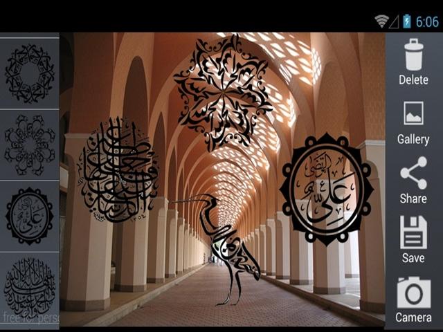 Is an editor application to add Islamic Arabic calligraphy in the form of a sticker that can be attached, in the slide in a photograph or directly from the camera.