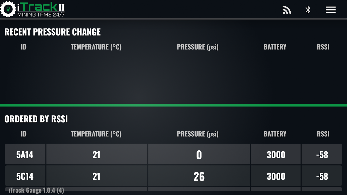 Misuratore digitale di gonfiaggio per veicoli fuoristrada. Questa applicazione è progettata per funzionare con sensori iTrack e lettori esterni 433 MHz. Consente un'inflazione accurata alla pressione compensata specificata.