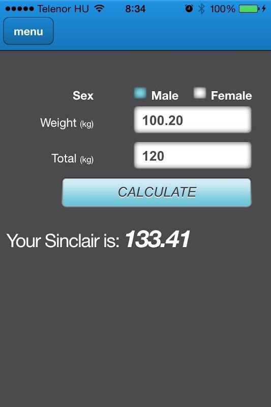 Enter your bodyweight and Total Result, select your gender and click Calculate to get your Sinclair Points.