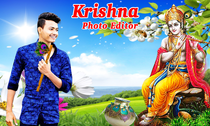 Decorare la foto come un Krishna con sfondo impressionante e adesivo.