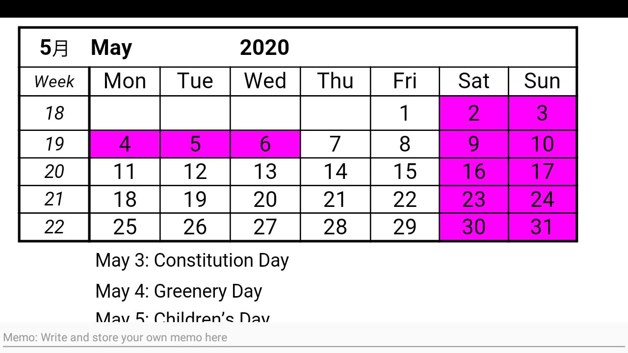 Informazioni su JAPAN NATIONAL HOLIDAY CALENDAR 2020 日本休日カレンダー