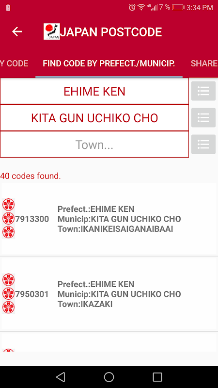 Cerca un codice postale per trovare il luogo correlato (Prefettura, Comune, città) in Giappone