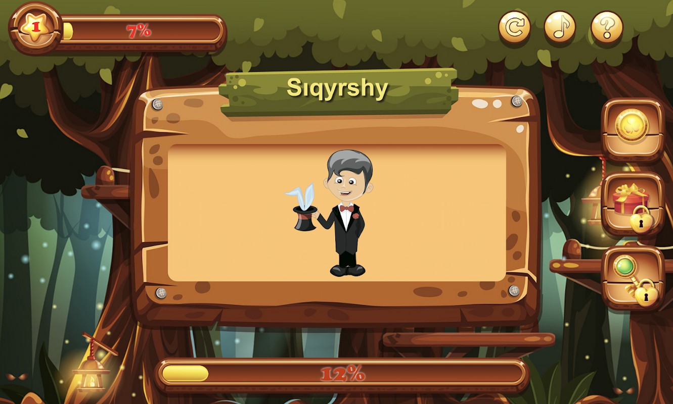 «Жасырын сөз» ойыны арқылы қазақ тілінің латын графикасына негізделген нұсқасын үйренуге арналған. Бұл ойын кішкентай балаларға сурет арқылы латын графикасыныдағы әріптерге көз үйрету үшін арналған.