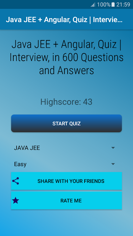 hai 600 domande e risposte (Java, Java EE, Angular) in un quiz