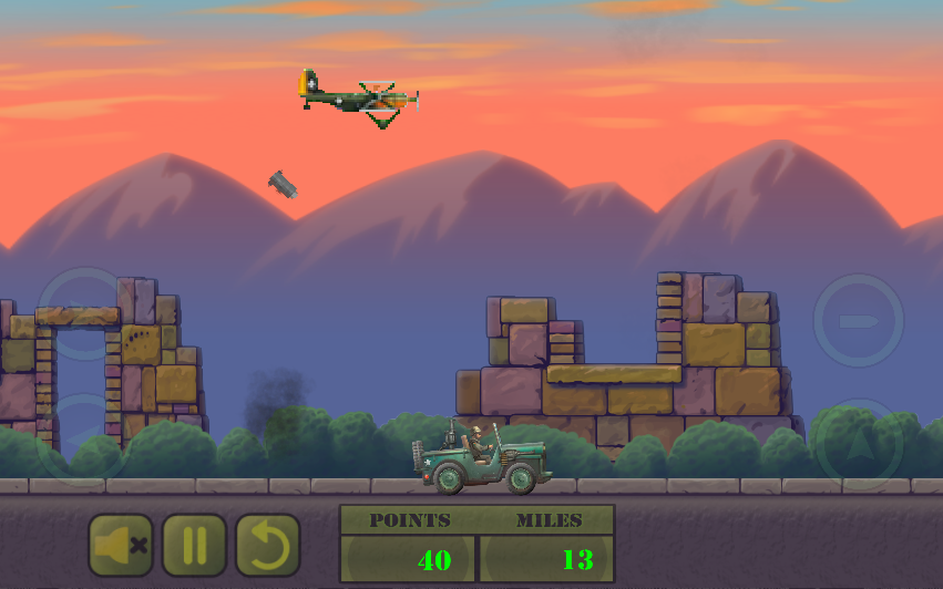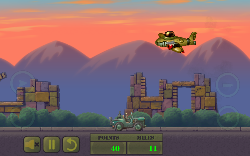 Jeep Patrol is an endless runner in the army toon style. Drive as far as you can and shoot everything that comes from the sky towards and make points. Moreover jump over large stones or wood destroying obstacles.