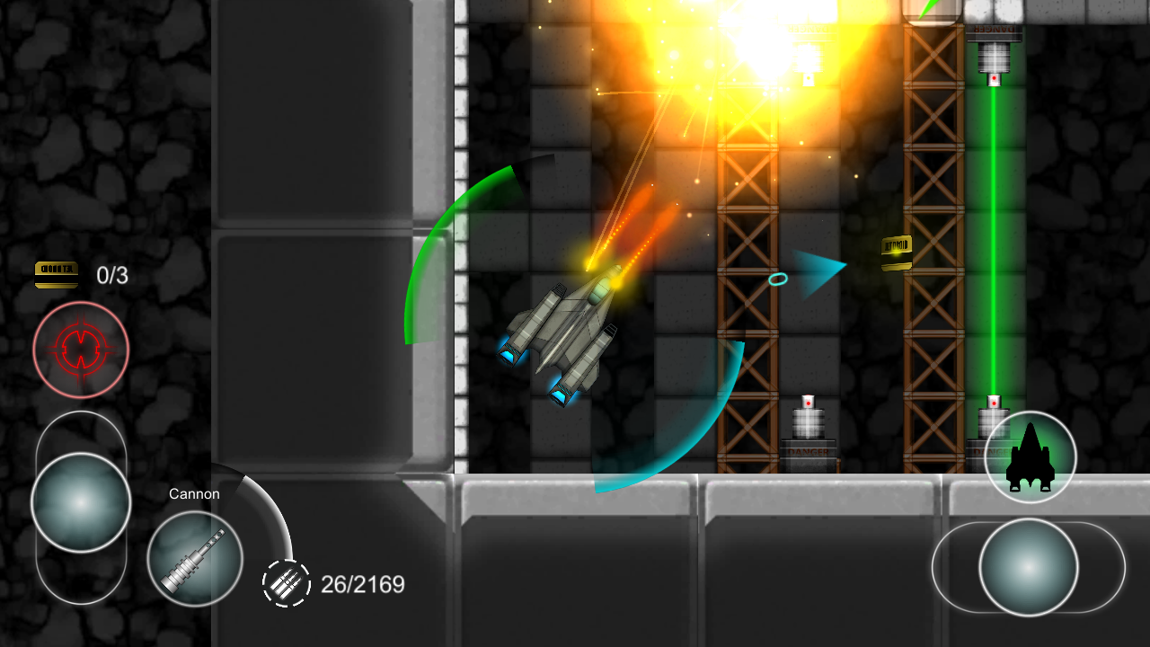 Il tuo obiettivo è quello di raccogliere tutte le carte passaggio e raggiungere l'obiettivo vivo, quando ci riesci, sarai ricompensato con alcuni punti energia extra che puoi spendere per potenziare il tuo razzo. Un sacco di pericolo attende di interromperti sulla strada per il traguardo.