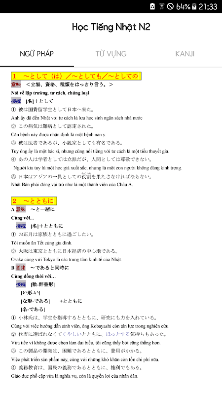 Ứng dụng học ngữ pháp, từ vựng, kanji tiếng nhật cấp độ n2 hay và đầy đủ nhất