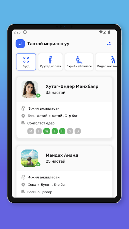 La nostra app semplifica la ricerca di babysitter, governanti, colf e assistenza agli anziani affidabili. Ha le seguenti caratteristiche.