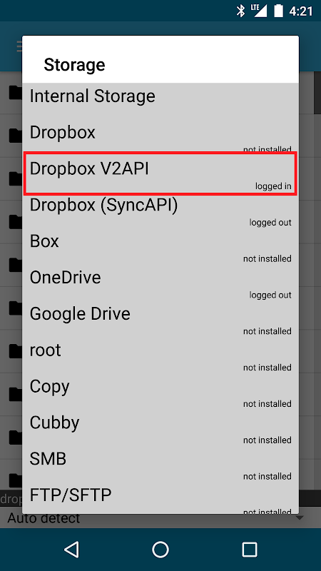 Installare questo plugin, allora è possibile attivare la connettività a Dropbox di Jota +.