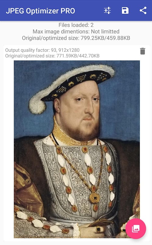 Questa applicazione ti consente di comprimere grandi foto in foto di dimensioni inferiori con una perdita molto minore o trascurabile della qualità.