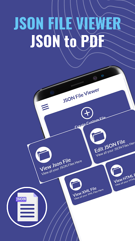 JSON viewer consente di leggere, visualizzare, creare e convertire qualsiasi JSON in PDF. Utilizzando l'app json openner, chiunque può facilmente aprire file JSON da un dispositivo Android. Il visualizzatore JSON per Android consente all'utente di sfogliare JSON complessi con JSON Opener. Il visualizzatore e l'editor JSON sono costituiti da cinque funzionalità principali; visualizzatore JSON, creatore JSON, modifica JSON, visualizzatore e editor di file XML, visualizzatore e editor di file HTML. JSON Viewer è uno strumento molto utile per visualizzare JSON. JSON Opener analizzerà JSON in stringa JSON e convertirà la stringa JSON in un formato leggibile. Il lettore JSON o l'apri file JSON ti consentirà anche di convertire il tuo JSON in PDF in un formato intuitivo. Il convertitore da JSON a PDF fornisce un modo semplice per formattare il JSON. Con JSON File Opener puoi anche visualizzare facilmente tutti i file PDF convertiti. Tramite JSON Reader puoi anche aprire file XML e HTML e modificarli facilmente. La funzionalità di lettore di file JSON dell'app JSON File Opener consente di visualizzare tutti i file JSON dal dispositivo dell'utente. L'utente può facilmente utilizzare JSON Opener per leggere JSON e visualizzare qualsiasi JSON. La funzionalità JSON in PDF di JSON Reader consente all'utente di convertire JSON in PDF.