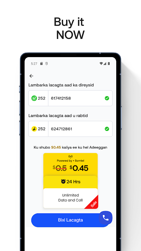 Ottieni dati SIM da Hormuud, Somtel, Somnet e Amtel.