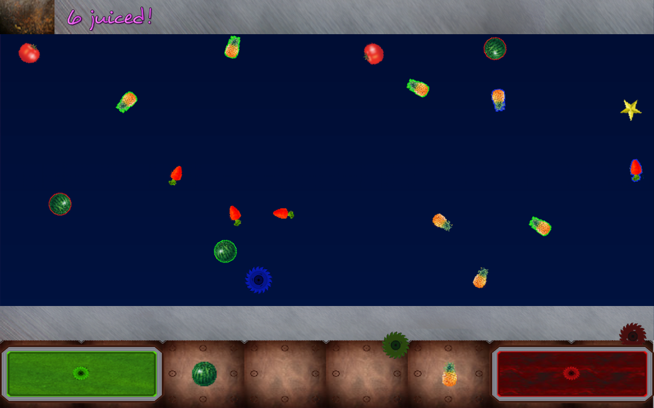 Use the green button for the green blender and the red button for the red blender - all you have to do is juice the fruits shown next to each of them and avoid the others...but they will change suddenly so watch them carefully!