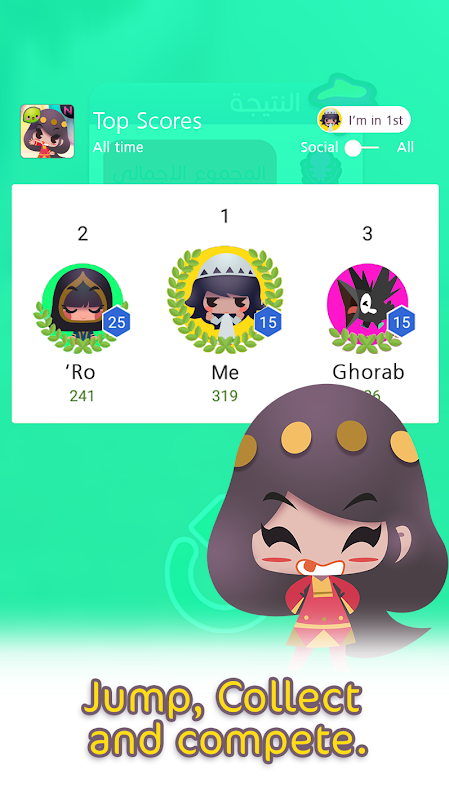 Jump Rope is a FREE arcade game; jump to avoid the rope, collect the magical fruits and compete for the highest score. The game contains a hand-crafted cute animated characters based on different Arabic cultures from the Gulf all the way to the Atlantic Ocean. Use your skill to preform combos unlocking new characters and abilities.