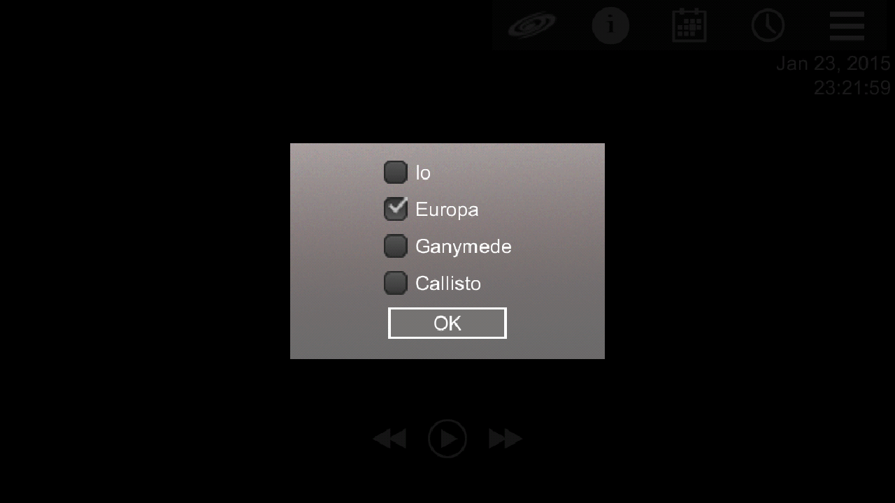 Jupiter Simulator (previously know as JoveMoons) is an astronomy app that shows the location of the four largest Jupiter moons, and the Great Red Spot.