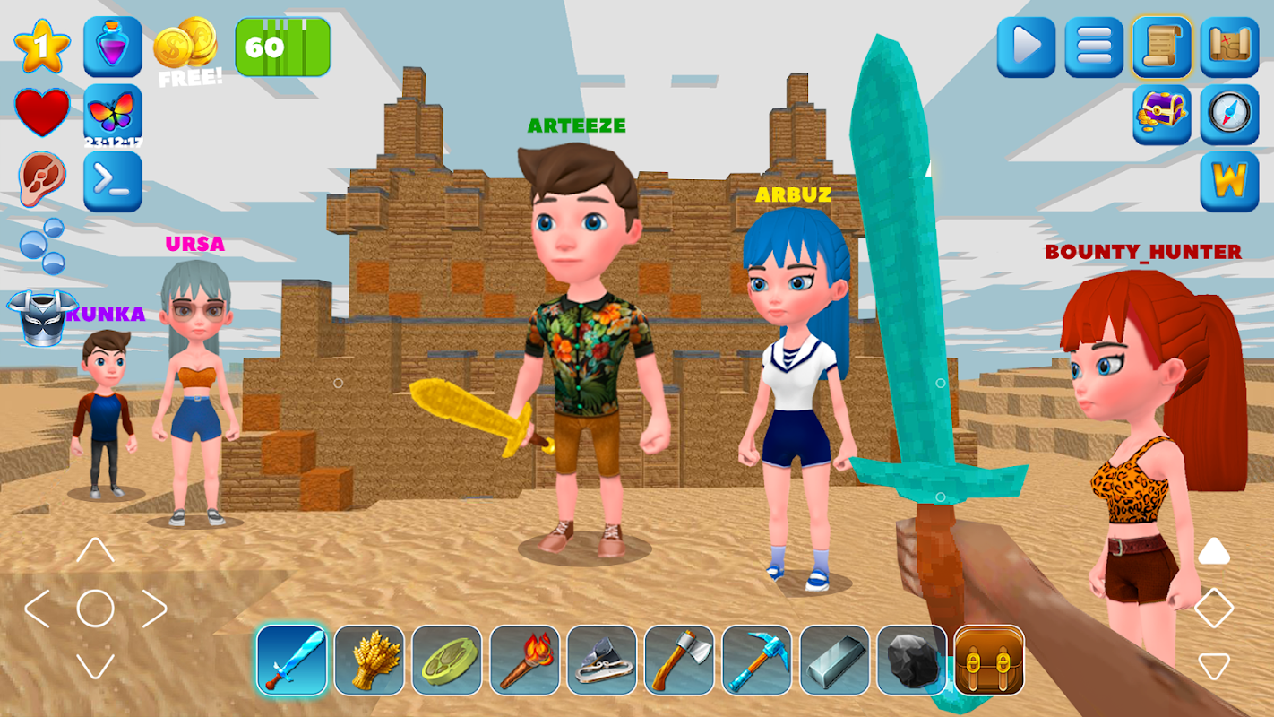 È un mondo artigianale con il giorno e il tempo che cambia, diversi blocchi, strumenti e armi.