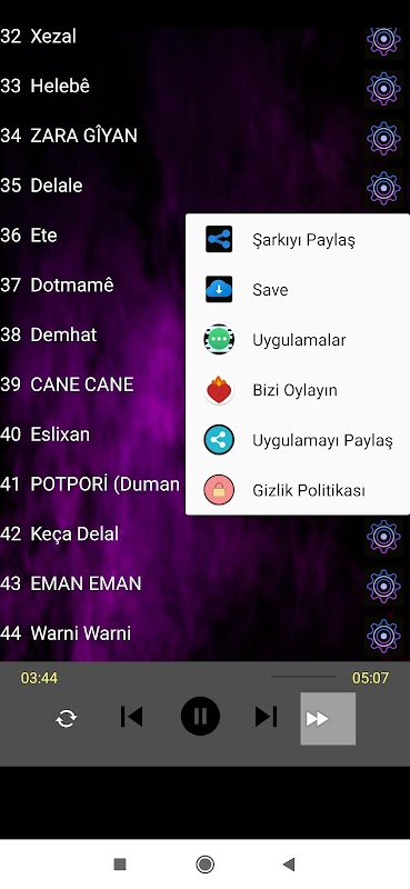 Kürtçe güzel eski ve yeni santıların şarkılarını dinleyebilirsiniz internete ihtiyaç duymadan her yerde telefonunuza uygulamayı indirdikten sonra kullanabilirsiniz. Bizi beğendiyseniz bizi oylamayı unutmayın.