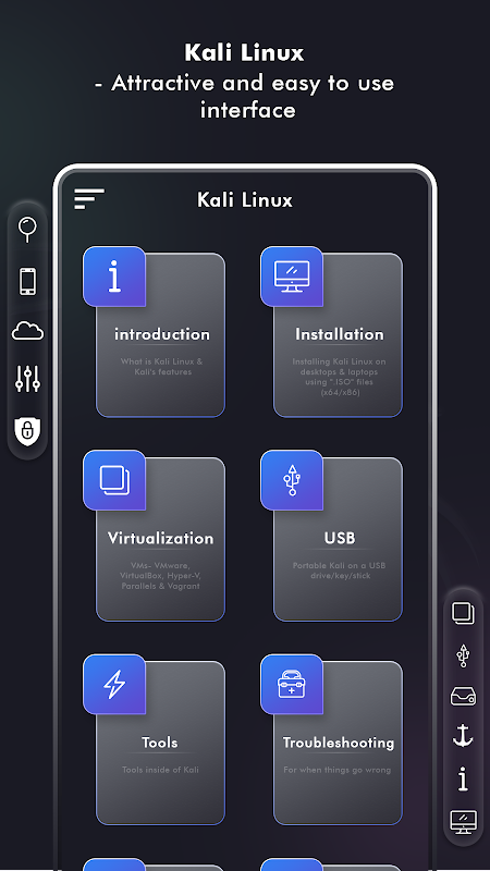 Questa applicazione "Kali Linux" è utile per gli studenti per imparare la programmazione passo dopo passo dal livello base a quello avanzato.